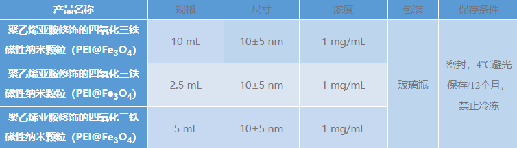 聚乙烯亞胺修飾的四氧化三鐵磁性納米顆粒
