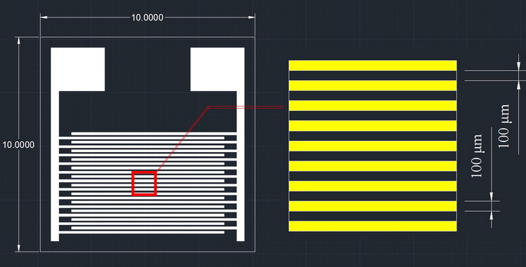 我們提供各種叉指電極,包括不同形狀,不同尺寸,不同線寬線距,不同基材(氧化鋁陶瓷,PI/PET柔性材料,單晶硅),不同工藝(厚膜工藝,DPC 工藝,MEMS 工藝)。