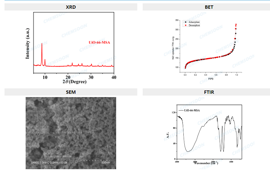 1) UIO-66-MSA 性質穩定,在水溶液和酸性條件下穩定(PH 1-10)