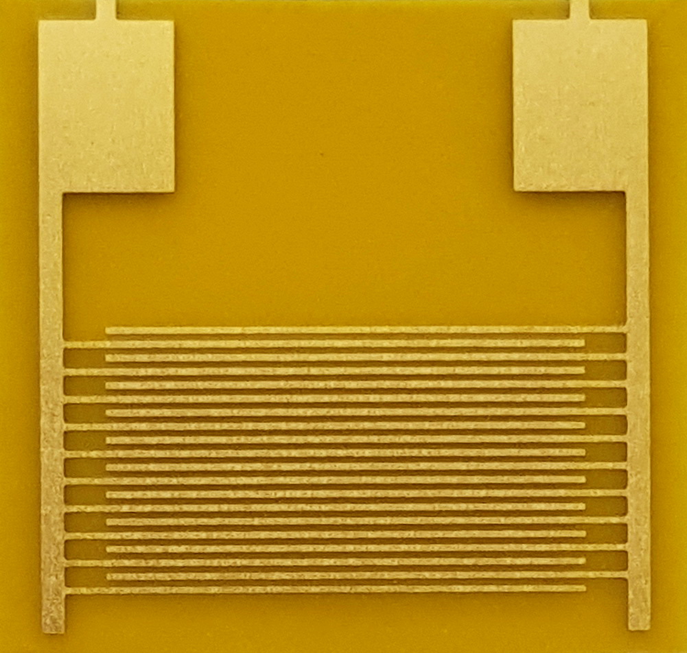 柔性PI叉指電極IDE醫療氣體生物濕度傳感器智能穿戴1.電極基材:聚酰亞胺(PI),厚度13um,外形尺寸10mm*10mm。
