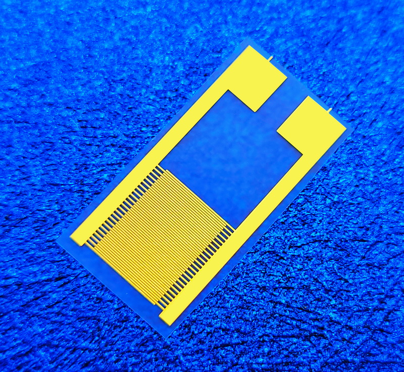 我們提供各種叉指電極,包括不同形狀,不同尺寸,不同線寬線距,不同基材(氧化鋁陶瓷,PI/PET柔性材料,單晶硅),不同工藝(厚膜工藝,DPC工藝,MEMS工藝)。