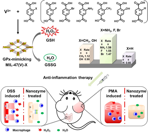 【主要優(yōu)勢(shì)】1、MIL-47(V)-NH2 MOF納米酶不僅具有良好的生物相容性,還是一種有效的ROS清除劑,可保護(hù)細(xì)胞免受氧化損傷;2、類GPx的MIL-47(V)-NH2納米酶對(duì)耳部炎癥和腸炎的廣譜抗炎作用;3、高活性MIL-47(V)-NH2的治療效果優(yōu)于低活性MIL-47(V)-H。