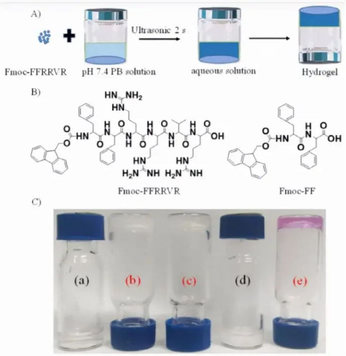 其他說明:密封狀態(tài)下保質(zhì)期半年【主要優(yōu)勢】與 Fmoc-FF 相比,F(xiàn)moc-FFRRVR 更傾向于在溫和條件下形成水凝膠,凝膠時(shí)間僅為 2 s