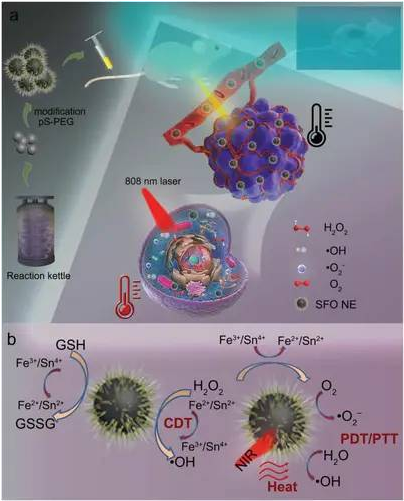 其他說明:密封狀態(tài)下保質(zhì)期半年【主要優(yōu)勢】具有過氧化氫酶樣活性和谷胱甘肽過氧化物酶樣活性;同時進行光熱治療(PTT)、光動力治療(PDT)和化學(xué)動力學(xué)治療(CDT)