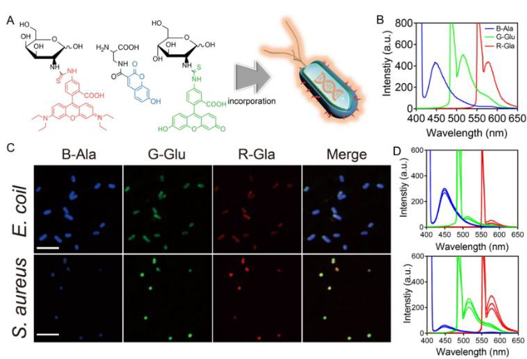 其他說明:密封狀態下保質期半年【主要優勢】與微生物共孵育后,這些熒光代謝物衍生物可與細菌結合,形成針對不同菌種、不同菌群的獨特真彩“指紋”。該研究還構建了一種便攜式光譜儀,可用智能手機自動進行比色分析,以方便地識別不同的細菌種類和微生物群。