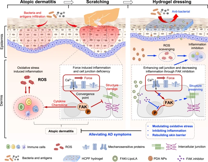 Hydrogel dressing integrating FAK inhibition and ROS scavenging for mechano-chemical treatment of atopic dermatitis文章鏈接: