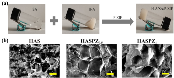 其他說明:密封狀態(tài)下保質(zhì)期半年【主要優(yōu)勢】通過將聚六亞甲基雙胍(PHMB)負(fù)載到 ZIF-8 納米粒子的框架中來獲得 pH 響應(yīng)性抗菌 P-ZIF(ZIF:沸石咪唑酯框架)。這將使 PHMB 能夠在受感染傷口的弱酸環(huán)境中釋放。為了解決燒傷感染問題,將 P-ZIF 納米粒子通過硼酸酯鍵加載到由海藻酸鈉 (SA) 和 3-氨基苯硼酸修飾的類人膠原蛋白 (H-A) 制成的水凝膠系統(tǒng)中