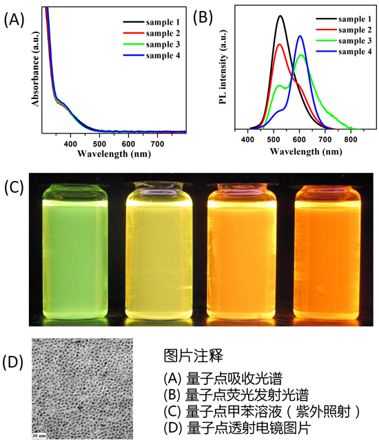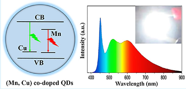 由吉林師范大學、華東理工大學、吉林大學、中科院長春光學精密機械與物理研究所應用的銅錳共摻雜量子點研制的高亮度高穩定的白光量子點照明器件(WLED)表現出一系列優異的特性:最大白光顯色指數 (CRI)為95,最大亮度(LE)為73.2 lm/W,色溫(CCT)為 5092K。該文章發表在由美國化學協會(ACS)主辦的2015年最新一期ACS Appl. Mater. Interfaces上,該雜志2016年影響因子為7.2,屬于中科院JCR期刊一區。本項研究為生產高效率高穩定量子點固體照明器件提供了一種新型技術指導方案。