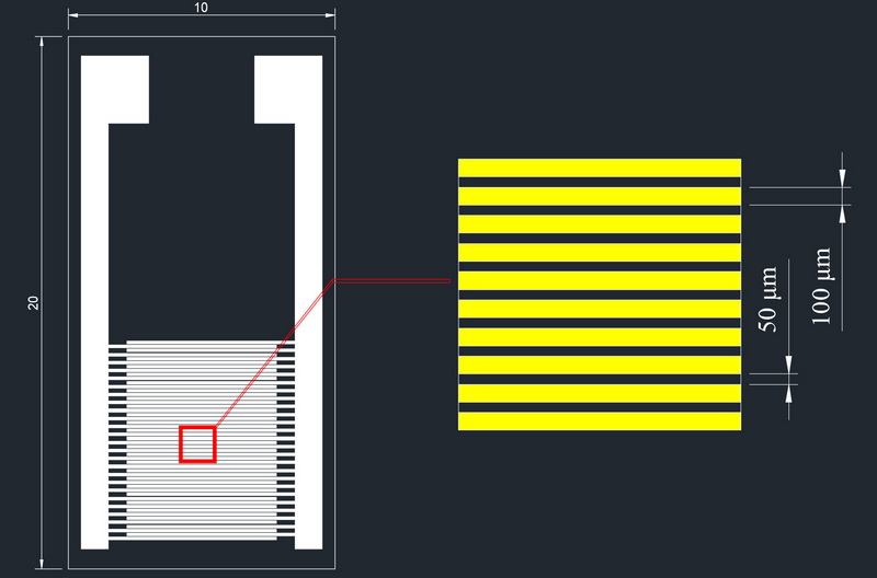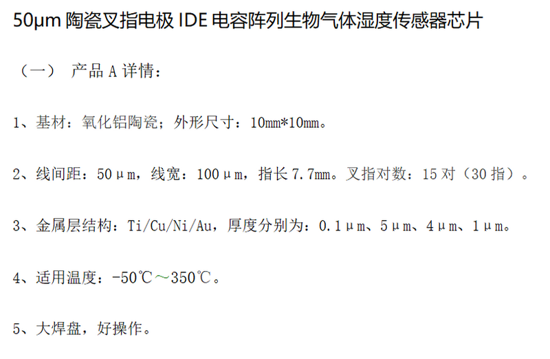 50μm ceramic interdigital electrode IDE capacitance array biogas humidity sensor chip