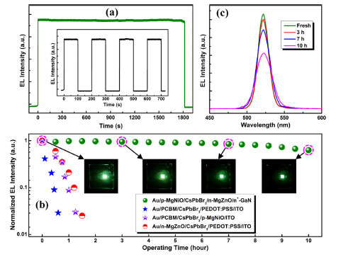 The high-brightness and high-stability green quantum dot light-emitting diode (G-QLED) device developed by Zhengzhou University, Jilin University, and Changchun Institute of Optics, Fine Mechanics and Physics, Chinese Academy of Sciences, applied Beike’s perovskite quantum dots, exhibits a series of excellent characteristics : Maximum brightness 3809 cd/m2, current efficiency 2.25 cd/A, external quantum efficiency (EQE) 2.39%. It can maintain 80% of the original device efficiency under 10V voltage for 10 hours without sealing. The article was published in the latest issue of Nano Letters in 2016 sponsored by the American Chemical Society (ACS). The magazine has an impact factor of 13.8 in 2016. It belongs to the first section of the JCR journal of the Chinese Academy of Sciences and is an authority in the field of nanodevices. This research provides a new technical guidance program for the production of high-efficiency quantum dot lighting devices and full-color display screens.