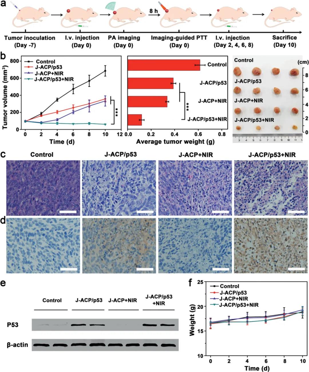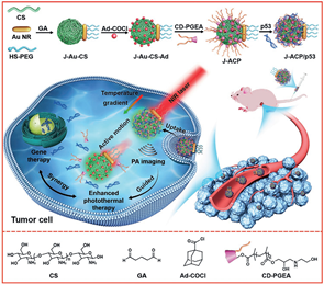 (1)實驗利用Janus結構的主動運動性、多糖結構域的選擇性表面功能化以及金納米棒的光熱效應構建了具有Janus結構的殼聚糖/金納米雜化體(J-ACP)。研究表明,由聚陽離子殼聚糖納米球和聚乙二醇化金納米棒組成的近紅外響應型J-ACP可以實現光聲(PA)成像指導的互補型光熱治療(PTT)-基因治療。