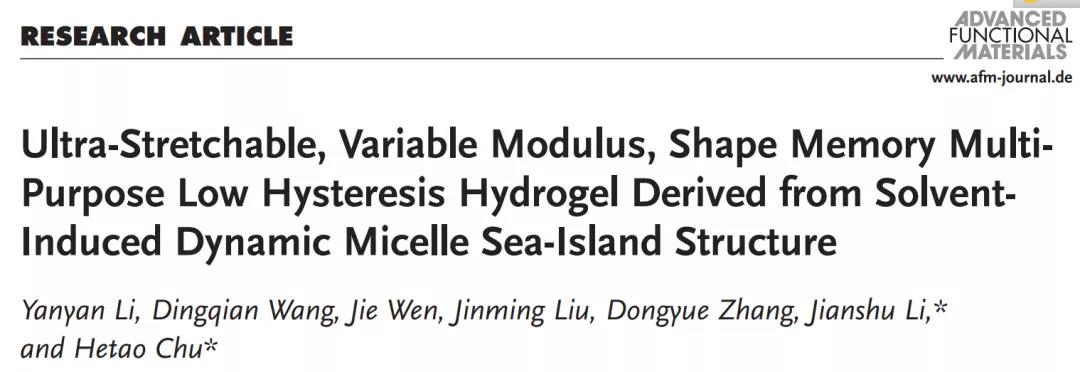 川大李建樹/楚合濤教授《AFM》:超拉伸、可調模量、形狀記憶、多功能低滯后水凝膠