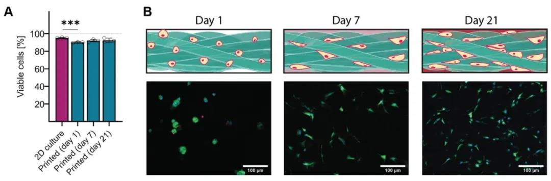圖6 纏結微束型凝膠負載軟骨細胞的高細胞活性3D打印