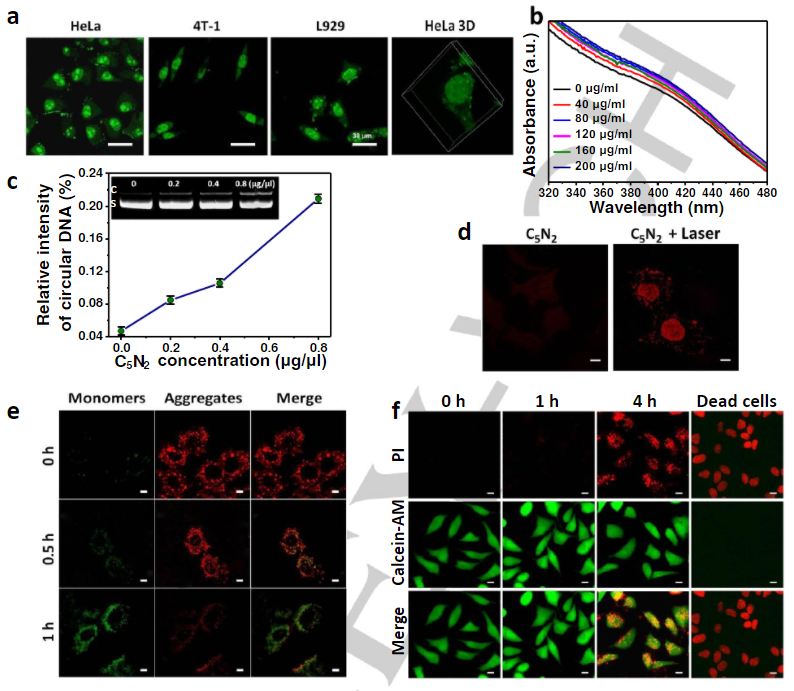 (2)此外,該半導(dǎo)體所具有的核靶向能力使其能夠?qū)崿F(xiàn)直接有效的DNA光裂解。綜上所述,這一研究為開發(fā)基于有機半導(dǎo)體的癌癥治療藥物一個提供了新的策略。