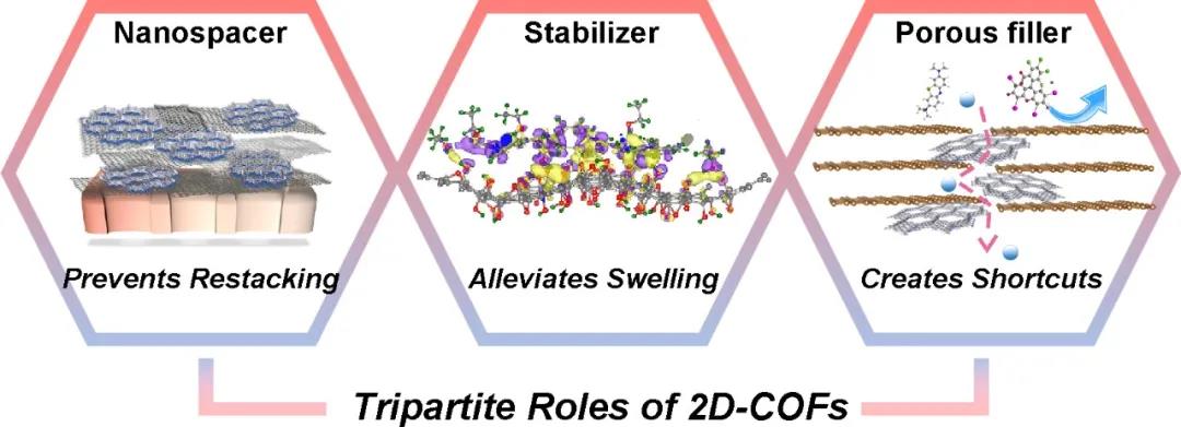 圖1.二維COF在石墨烯薄膜中的三重作用。