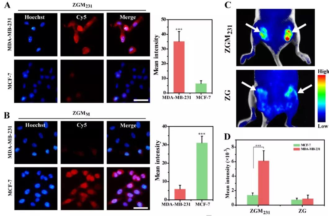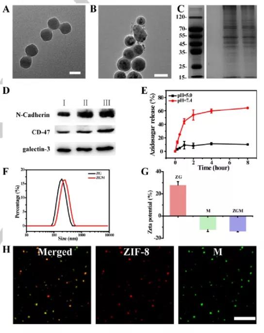 (1) The biomimetic platform has abundant receptors, which can not only selectively target cells of the same type, but also achieve selective MGL for different breast cancer subtypes. In addition, ZIF-8 with endolysosome escape properties can make azide sugar escape from the lysosome and accelerate its metabolic integration.