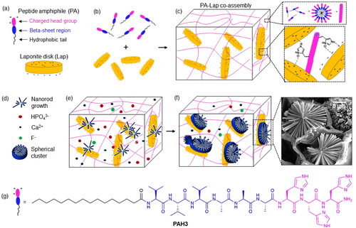 The team developed a co assembled organic-inorganic hydrogel platform for crystal growth in vitro, mediated by the particle attachment mechanism in the 3D supramolecular restriction framework. The design strategy depends on the electrostatic interaction between Lap nanoscale and cationic PAH3 molecules to integrate the intrinsic characteristics of organic and inorganic components into unique organic inorganic hydrogel structures. The obtained materials show high surface area, high mechanical properties and self repairing properties. In addition, the co assembled PA-Lap hydrogel shows a nano scale structure which can be used as a sealed space for hydroxyapatite to grow from ordered nanorods to well-defined spherical clusters. This study explored this mineralization mechanism as a biomimetic 3D model to regulate the nucleation and spatiotemporal organization of FHA.