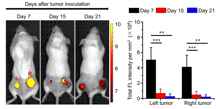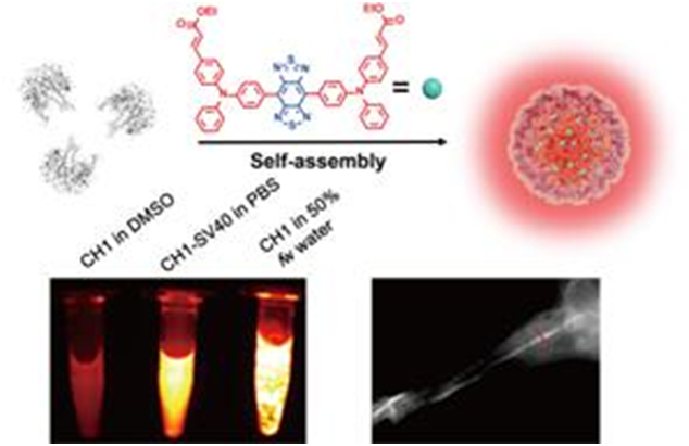 As a novel in vivo fluorescent imaging probe, organic fluorescent nanoparticles in the near infrared region II have the properties of twisted intramolecular charge transfer (TICT) and aggregation induced emission (AIE), However, the organic nanoparticles prepared by the existing technology have some problems, such as difficult to control the particle size accurately, poor stability and biocompatibility. In order to solve this problem, Li Feng and his collaborators used heterozygous assembly strategy to package tict-aie molecule (ch1) in the inner cavity of SV40 VLP to construct ch1-sv40 with uniform particle size (about 21 nm), high biocompatibility and photostability, and the fluorescence quantum yield was up to 13.03%; Using ch1-sv40, the tumor resection was successfully performed under the guidance of angiography and image. This work provides a new nanoprobe for biomedical near infrared II imaging (Fig. 2) and a new idea for controllable construction of organic nanoparticles. Relevant results were published in ACS appl. Mater. Interfaces (DOI: 10.1021 / acsami. 1c02691). Dr. min Xuehong of Central South University for nationalities, Dr. Zhang Juan of Wuhan Institute of Virology and Mr. Li Runhao of Central South University for nationalities are the co first authors of this paper. Researcher Li Feng of Wuhan Institute of Virology and Professor Sun Yue of Central South University for nationalities are the co corresponding authors of this paper.